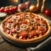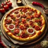 tomate, mozzarella, viande hachée, chèvre, chorizo*, oignons