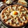 crème fraîche, mozzarella, poulet, champignons, poivrons, œuf