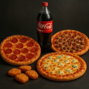 3 Pizzas Junior au choix + 1 Maxi Coca 1L5