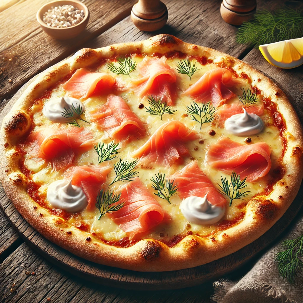 crème fraîche, double mozzarella, saumon fumé